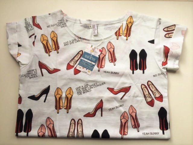 Avec le temps vous saurez que je suis une grande fan du site Etsy. J’y chine des meubles et des objets de déco vintage. J’ai d’ailleurs récemment acheté un petit meuble à plante des années 50 que je vous présenterai dans une prochaine série de photos déco. J’y achète aussi des photos et des tableaux de jeunes artistes. Ce site est une vraie caverne d’Ali Baba si on prend le temps de chercher. Il faut bien sûr faire attention à quelques pièges comme penser aux frais de douanes par exemple et bien se renseigner sur l'authenticité des pièces mises en vente. Mais si vous êtes méticuleux, vous pouvez y découvrir de vraies pépites. Il y a quelques jours, j’y ai fait une trouvaille que j’ai réceptionnée cette semaine. Normalement, je n’achète jamais d’article de mode sur ce site mais je ne sais plus par quel hasard je suis tombée sur la boutique d’une jeune créatrice polonaise YeahBunny. Elle propose quelques pièces comme des tee-shirts, sweats, pantalons et quelques petits accessoires qui sont tous en série limitée. Vous pouvez aussi retrouver ces pièces directement sur son site web www.yeahbunny.pl Personnellement j’ai craqué sur un tee-shirt imprimé stilettos avec pour inscription « give a girl the right shoes and she can conquer the world ». J’ai bien reçu mon tee-shirt cette semaine et je l’adore.