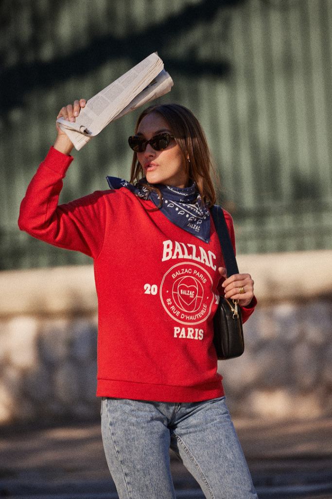 Mon favori suivant est le sweat rouge « Harlow » de la marque Balzac. Et l’adjectif « rouge » a toute son importance. Car ces derniers temps, j’ai fait une étude approfondie de ma colorimétrie. J’ai appris l’étude des couleurs et donc la colorimétrie il y a plus de 10 ans. Et je me suis amusée à pousser le sujet et à étudier de façon très précise les couleurs qui sont les plus flatteuses sur moi. Et bien sûr le rouge en fait partie et je n’avais rien dans mon armoire de cette couleur. Je me suis donc acheté un sweat rouge de chez Balzac que j’adore!
